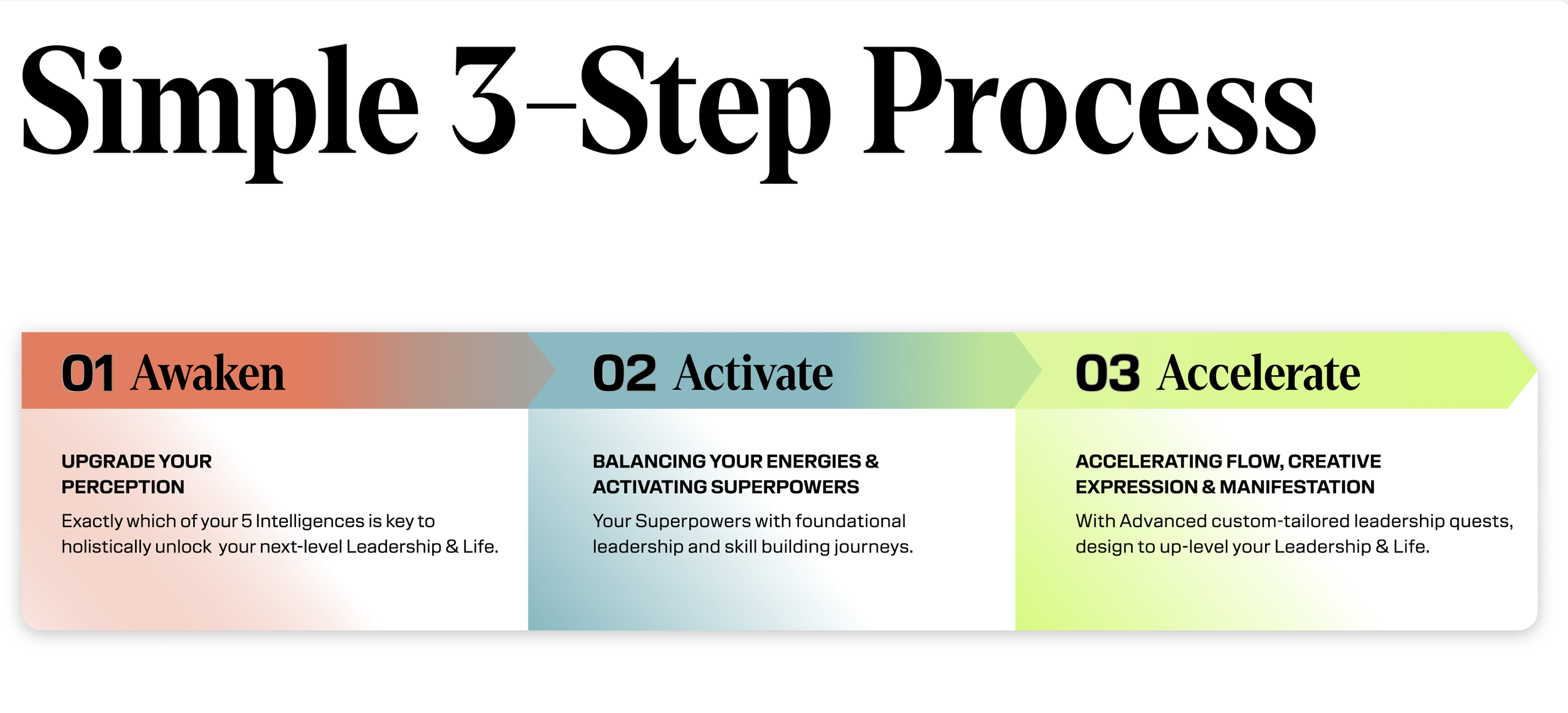 It’s a proven system, platform, and process — designed for modern leadership. It rapidly unlocks exponential clarity, purpose-driven energy, and structure for sustainable growth so that leaders and their teams can grow and thrive.