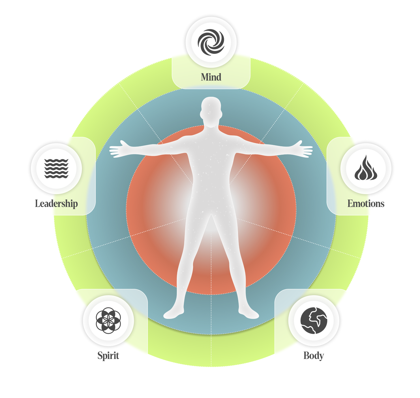 Aligns Mental, Emotional, Physical, Leadership, and Social dimensions.