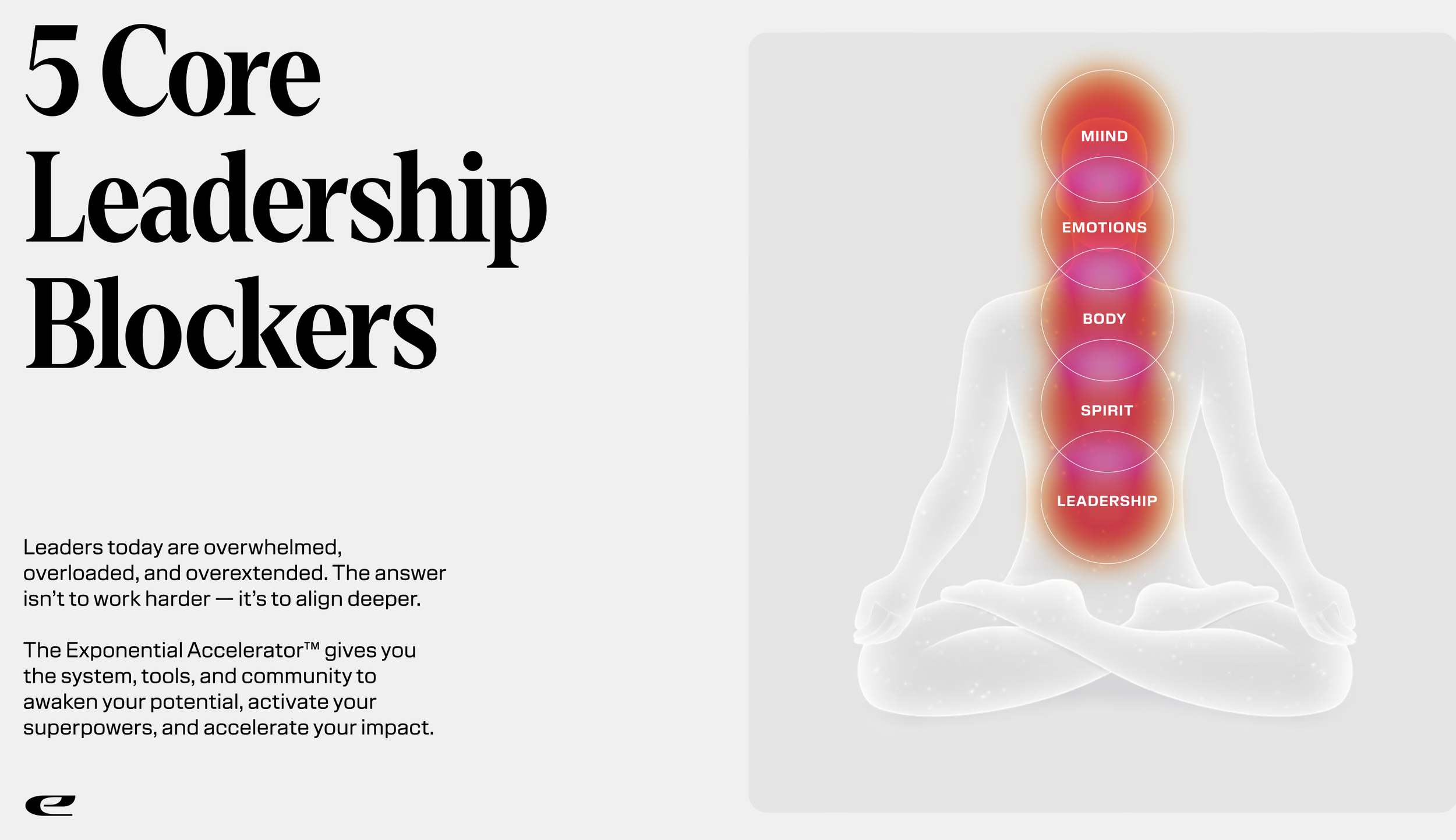 The Exponential Accelerator™ is your blueprint to upgrade how you think, feel, and lead.